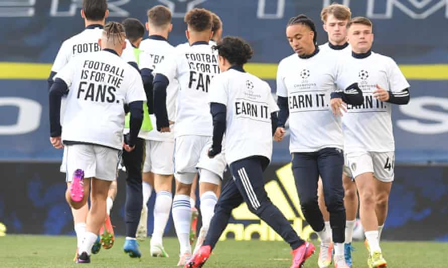 Champions League Earn It Leeds Leave Shirts In Liverpool Dressing Room European Super League The Guardian